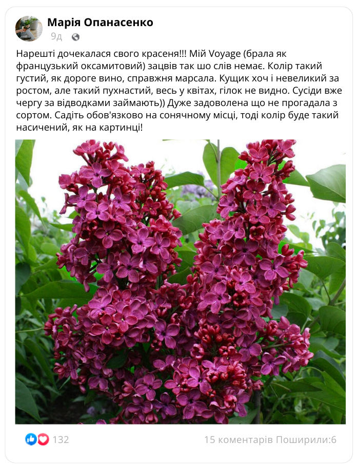 «Voyage» — декоративний сорт французької селекції, який цінується за компактний ріст, пишні махрові суцвіття та стабільне весняне цвітіння. Кущ формує акуратну густу крону висотою приблизно 2,3–2,5 метрів.